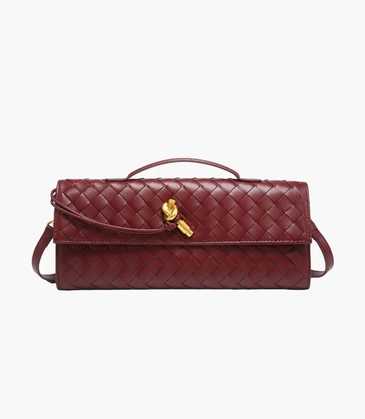 Unsere edle Schultertasche “Royal Weave” ist der Inbegriff von Eleganz und zeitloser Klasse. Das luxuriöse, burgunderrote Design mit kunstvoll geflochtener Optik macht diese Tasche zu einem absoluten Highlight in jeder Garderobe. Der goldene Verschluss mit charmantem Knotendetail verleiht ihr einen Hauch von Extravaganz und Glamour.